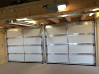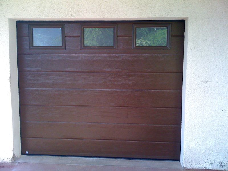 Porte de garage sectionnelle avec section vitrée et ventilation.